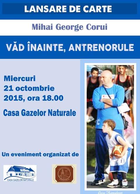 Miercuri, 21 octombrie, de la ora 18.00, Mihai George Corui isi va lansa cartea ,, Vad inainte, antrenorule” la Casa Gazelor Naturale, o lucrare de schite si povestiri. Evenimentul este organizat de Asociatia culturala Mediasul nostru.