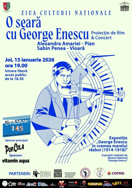 Cu ocazia Zilei Naționale a Culturii, Centrul Cultural Reduta propune publicului brașovean un program cultural de anvergură, desfășurat joi, 15 ianuarie 2026, dedicat memoriei, identității și valorilor fundamentale ale culturii române. Evenimentele reunesc muzica, filmul documentar, istoria și literatura, într-un demers multidisciplinar de profunzime.