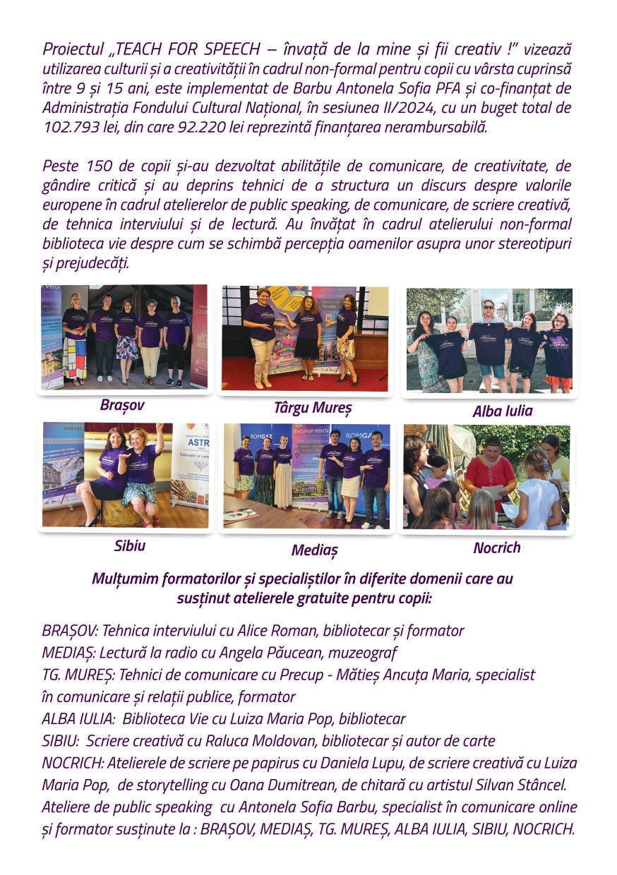 Broșura Teach for Speech 2024