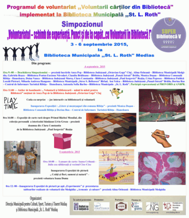 Faire du benevolat30 de bibliotecari şi voluntari din ţară se vor întâlni la începutul lunii septembrie la Mediaş Antonela Barbu