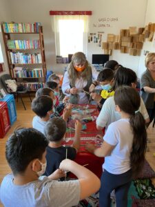 Florin Bucuțea, voluntarul bibliotecar cel care a înființat această bibliotecă, ne-a întâmpinat alături de cei 12 copilași, din sat, dar și de mama lui, cea care alături de ceilați prieteni l-au sprijinit în această inițiativă, de a da viață bibliotecilor rurale în județul Brașov.