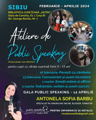 ParteneriateAteliere de public speaking pentru copii cu vârsta cuprinsă între 9 – 15 ani la Sibiu Antonela Barbu