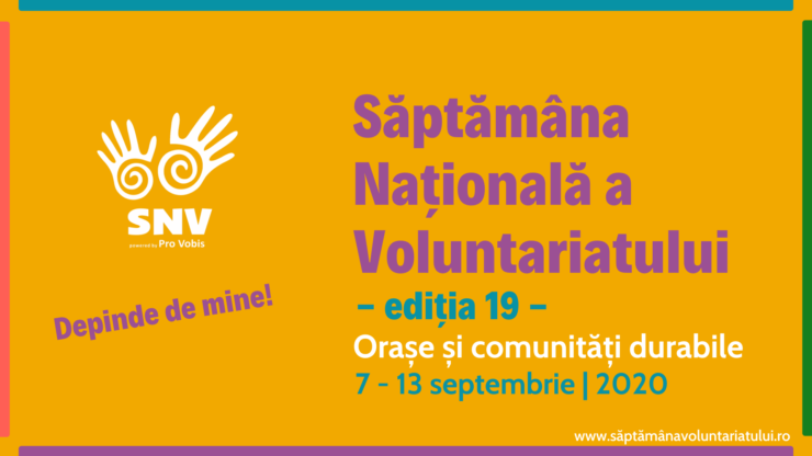 Luni, 7 septembrie, începe Săptămâna Națională a Voluntariatului (SNV), ediția a 19-a. O săptămână cu peste 120 de activități în localități din toată țara, evenimente care pe lângă celebrarea muncii voluntarilor aduc în atenția comunității idea de dezvoltare durabilă.