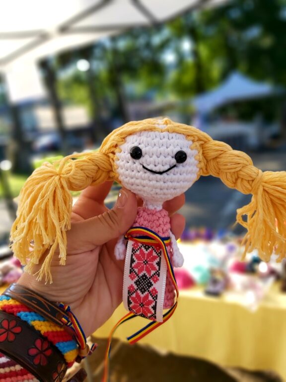 O femeie cu părul prins în codițe, îmbrăcată colorat îți zâmbea de dincolo de ecran, printre gheme de ață. Am vizitat-o la Căsuța Meșteșugarului amplasată în zona Coresi, din Brașov. Chiar dacă afară era rece, atmosfera din căsuță te purta pe tărâmurile copilăriei, înconjurată de ursuleți croșetați, de pisicuțe și de flori multicolore.