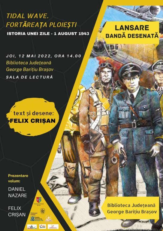 Biblioteca Judeţeană ,,G. Barițiu” Braşov vă invită la lansarea benzii desenate ,,Tidal Wave – Fortăreaţa Ploieşti. Istoria unei zile – 1 august 1943″, desene şi texte de Felix Crişan, editată şi publicată sub egida ei şi a Consiliului Judeţean Braşov în anul 2021.