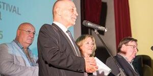 Regizorul Radu Gabrea, Președintele MeCEFF “7 + 1”, împreună cu Teodor Neamţu, Primarul municipiului Mediaş; Centrul Naţional al Cinematografiei; Ministerul Culturii; Institutul Cultural Român şi Asociaţia...