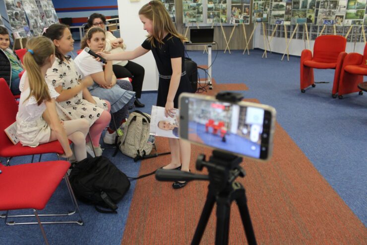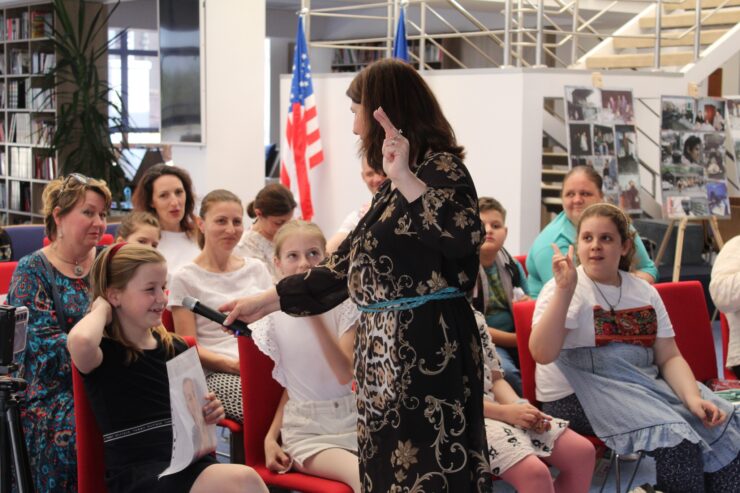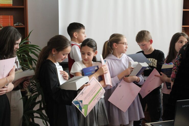 La Biblioteca Județeană Mureș în Sala de lectură au fost invitați atât participanții la atelierele desfășurate la Cuibul Democrației, cât și elevii clasei a IV-a de la Școala Gimnazială Dacia, Târgu-Mureș însoțiți de înv. Husari Iuliana.