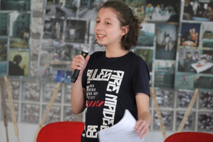 ,,Am venit la acest curs, pentru că eu sunt o fire mai rușinoasă și îmi era foarte greu să mă exprim cu un public mai mare și m-am gândit că astfel de ateliere mă pot ajuta. Mi-era frică să nu greșesc sau să nu deranjez publicul cu ceea ce spun. Am învățat să fiu mai liniștită și să am încredere în mine că pot să țin un discurs în fața publicului. Am mai învățat că este în regulă și chiar dacă ceilalți mă judecă, nu trebuie să fie o problemă pentru mine. Acest curs chiar m-a ajutat foarte mult.” (M.B., 12 ani, Tg. Mureș)