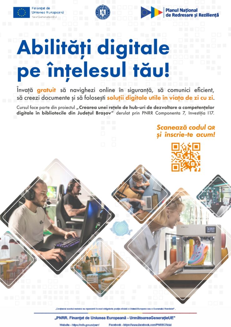 Cursul face parte din proiectul „Crearea unei rețele de hub-uri de dezvoltare a competențelor digitale în bibliotecile din județul Brașov”, derulat prin Planul Național de Redresare și Reziliență, finanțat de Uniunea Europeană, cu sprijinul Consiliului Județean Brașov.
