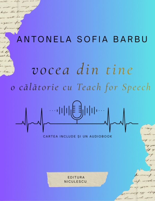 VOCEA DIN TINE. O călătorie cu TEACH FOR SPEECH ar fi o carte scrisă pentru copii și adolescenți, dar și pentru oricine a învățat, prea devreme, să tacă. Este o carte-ghid, o confesiune și o invitație la (re)descoperire. Ar completa perfect colecțiile de dezvoltare personală de la Editura NICULESCU, acolo unde deja se află volume care ne învață să fim prezenți, echilibrați și curioși.